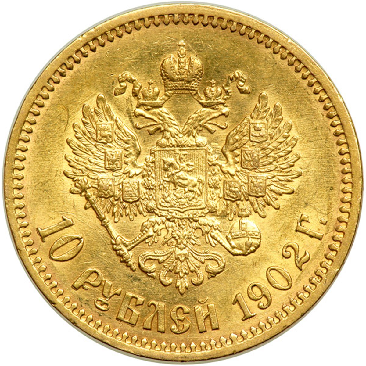 Russia. 10 Rubles, 1902-AG. Fr-179; KM-Y-64. Weight 0.2489 ounce. Nicholas II. Extremely Fine.