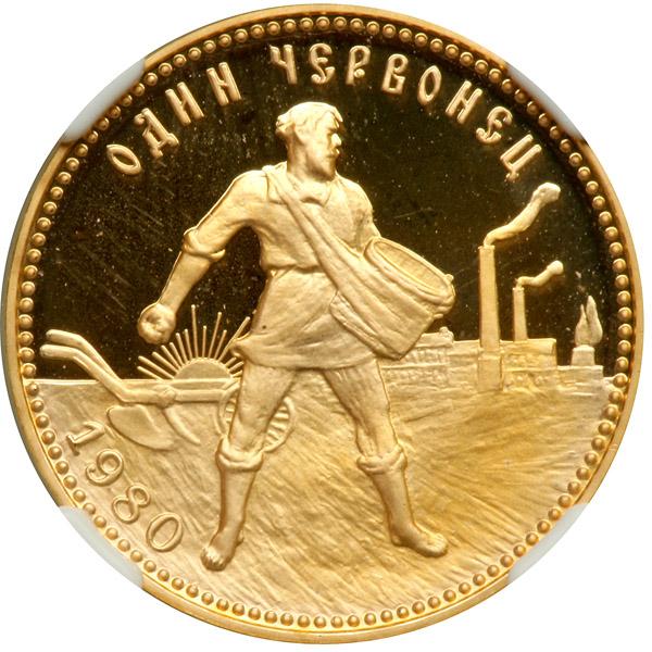 Russia. 10 Rubles or Chervonetz, 1980-. Fr-181a; KM-Y85. Weight 0.2489 ounce. Sower scattering seed. NGC graded Proof 68 Ultra Cameo.