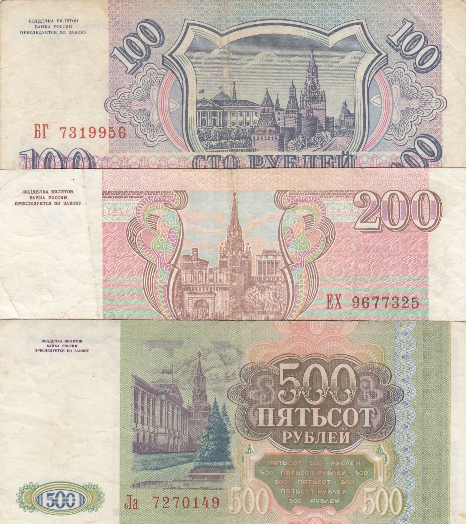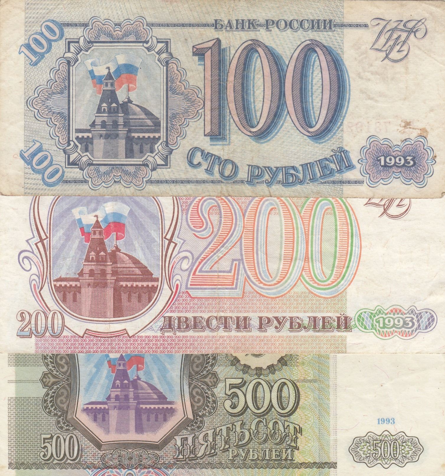 Russia, 100 Ruble, 200 Ruble and 500 Ruble, 1993, VF / XF, p254, p255, p256, (Total 3 banknotes)br/