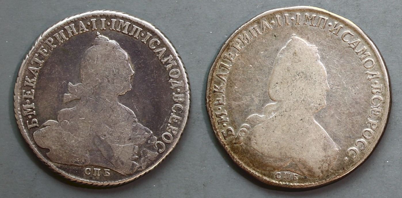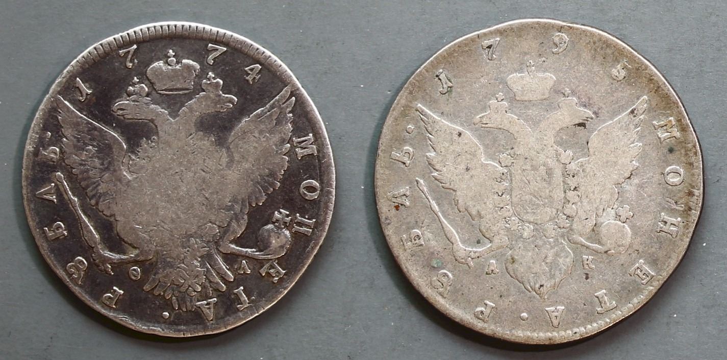 Russia; 1774 1Ruble & 1795 1 Ruble. Both coins VG-F or better,
