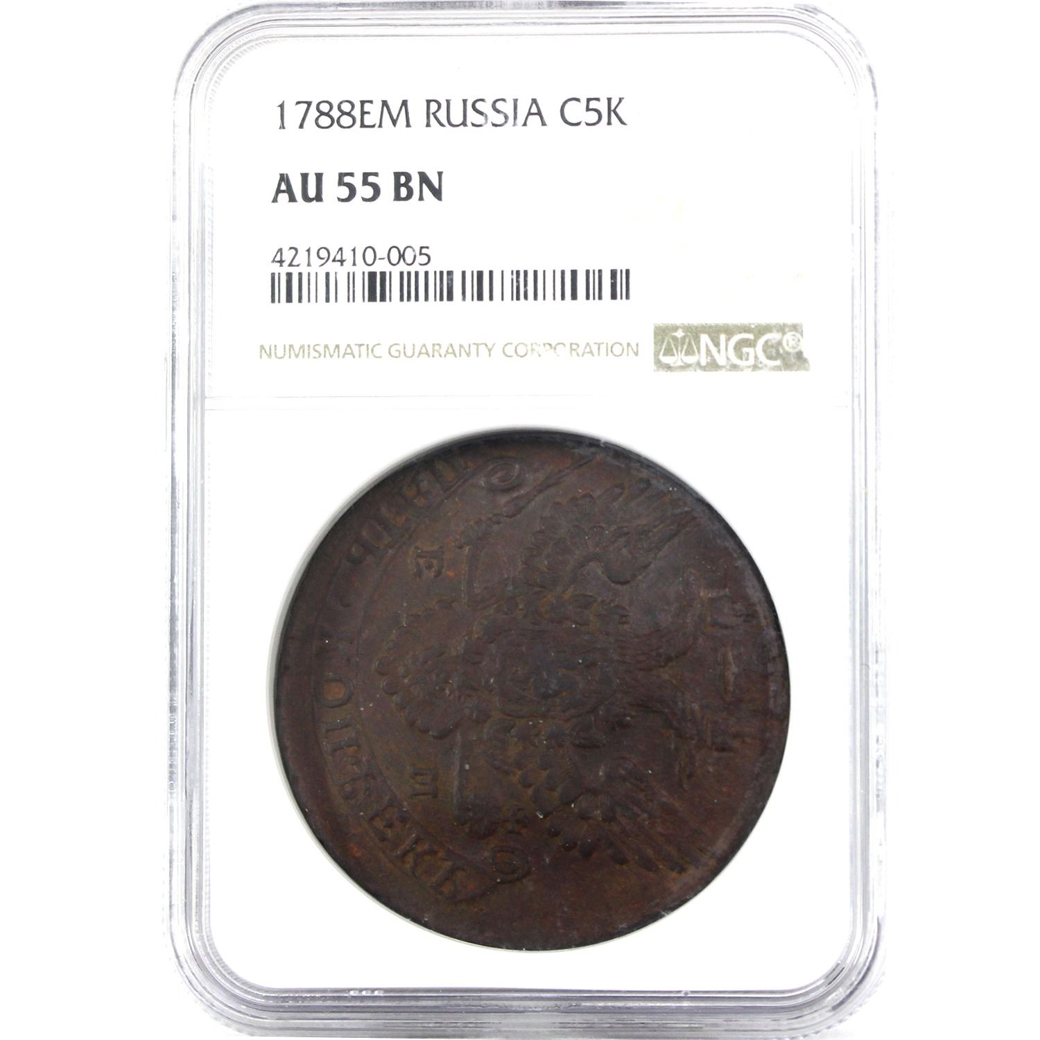 Russia 1788EM 5 Kopeks NGC AU55, Brown
