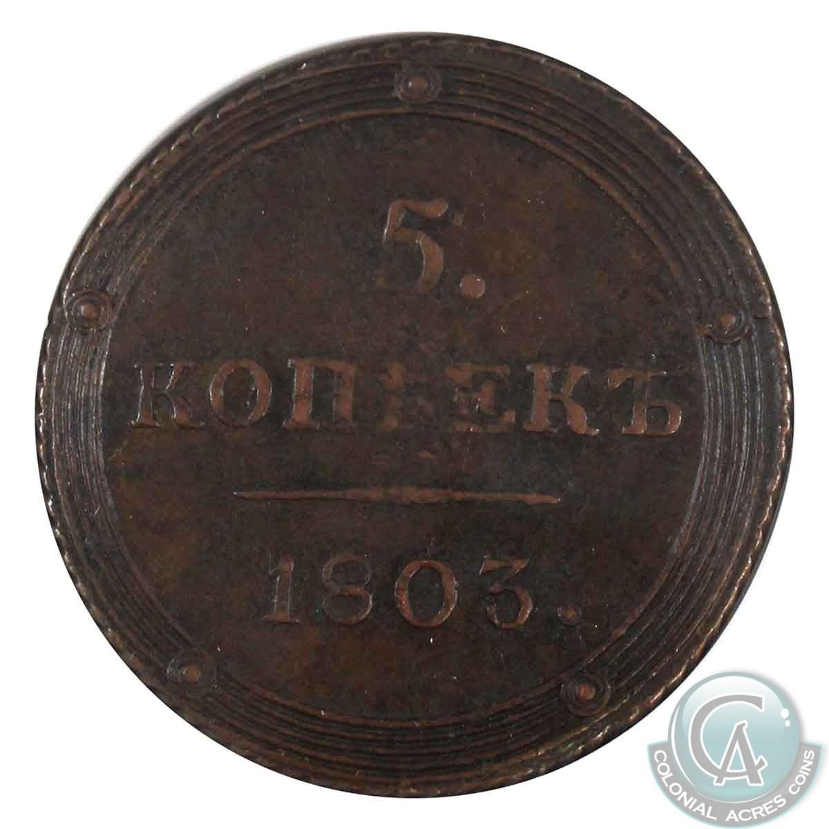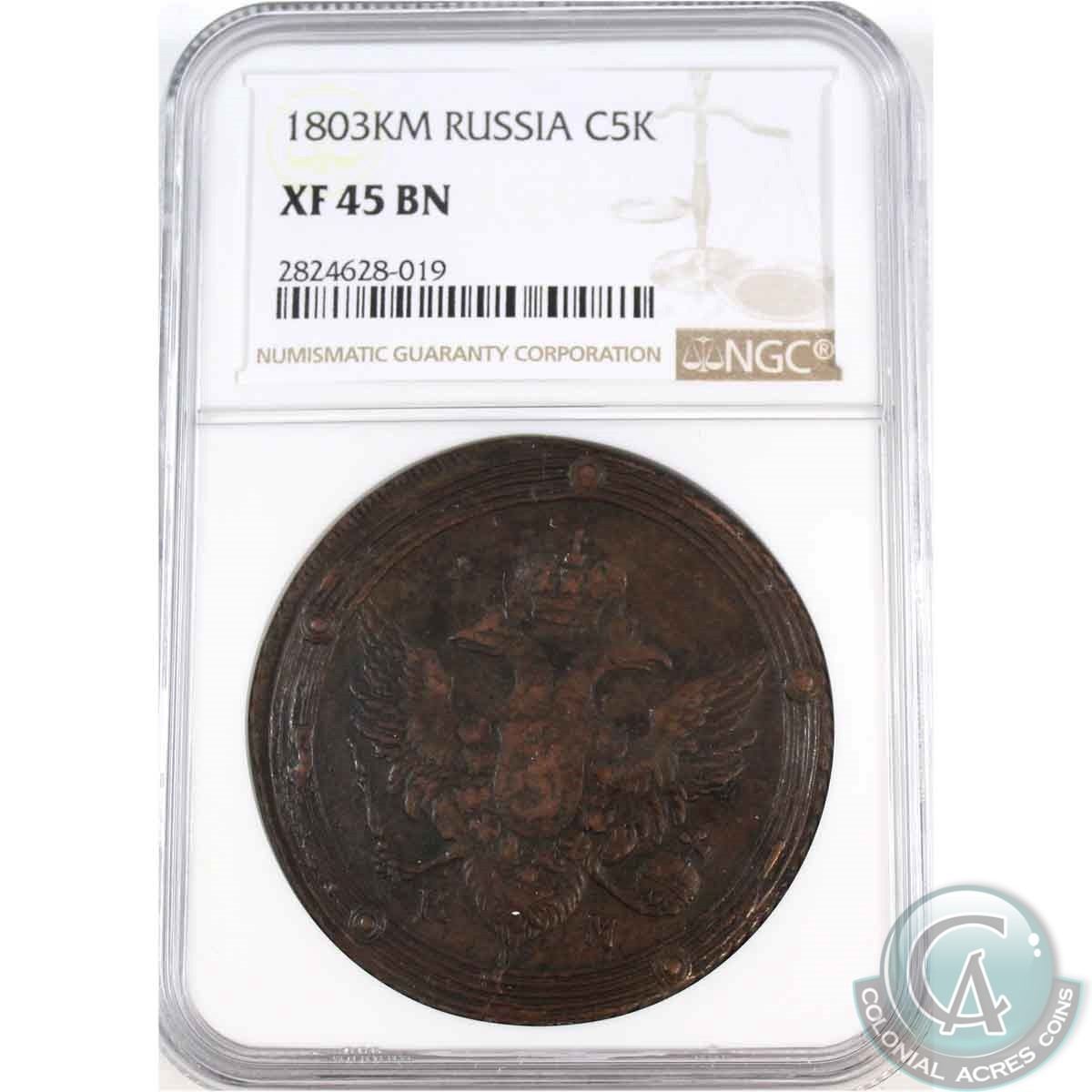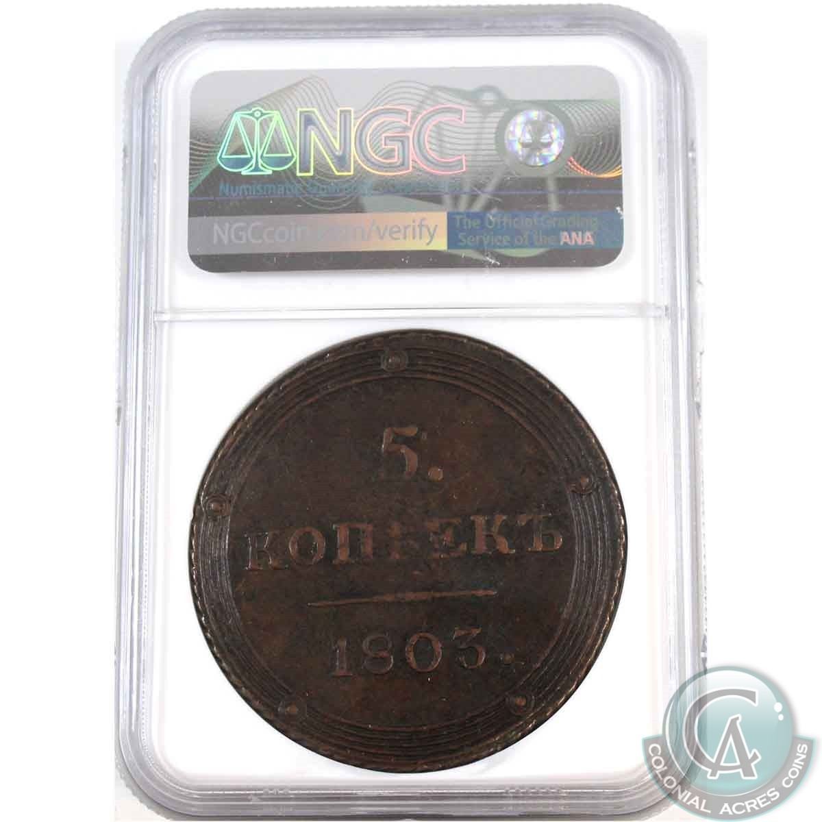 Russia 1803KM Copper 5 Kopeks NGC Certified XF-45 BN