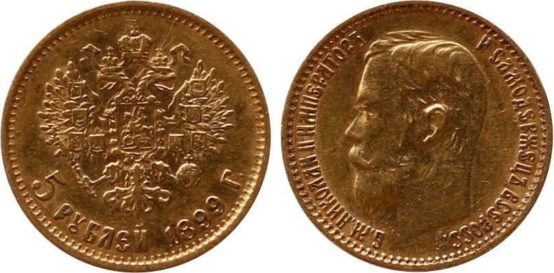 Russia; 1899 5 Rubles "Tsar Nicolas II" #Y62, VF or better