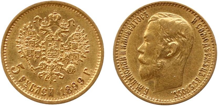 Russia; 1899 5 Rubles "Tsar Nicolas II" #Y62, VF or better