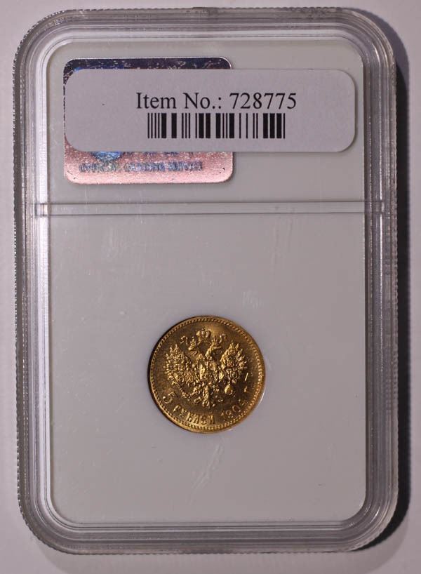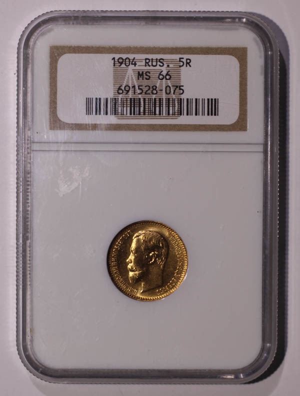Russia, 1904, 5 Rubles. NGC graded MS-66.