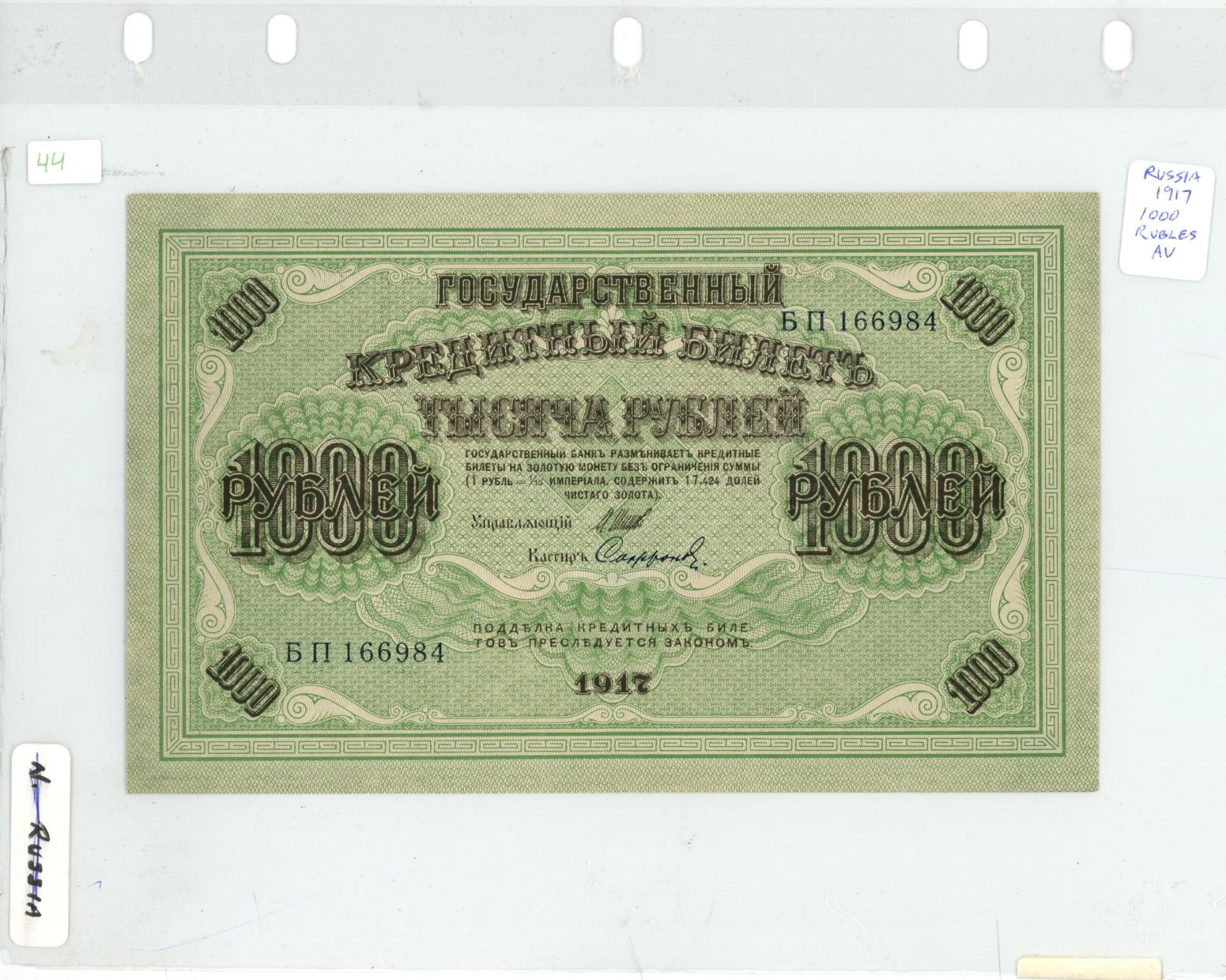 Russia. 1917 1000 Roubles. Massive note measures 8 1/2” X 5 1/4”. AU.