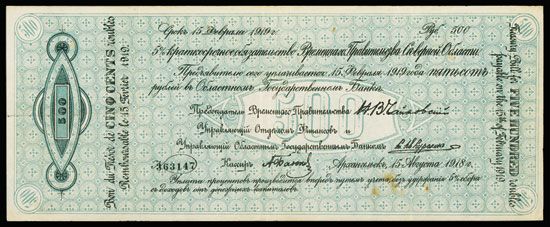 Russia, 1918, 5%, 500 Rubles, P-S128, Issued and uncancelled, black text on light blue underprint, Choice VF to XF condition, very light toning spots on bottom right. Attractive and scarce note.