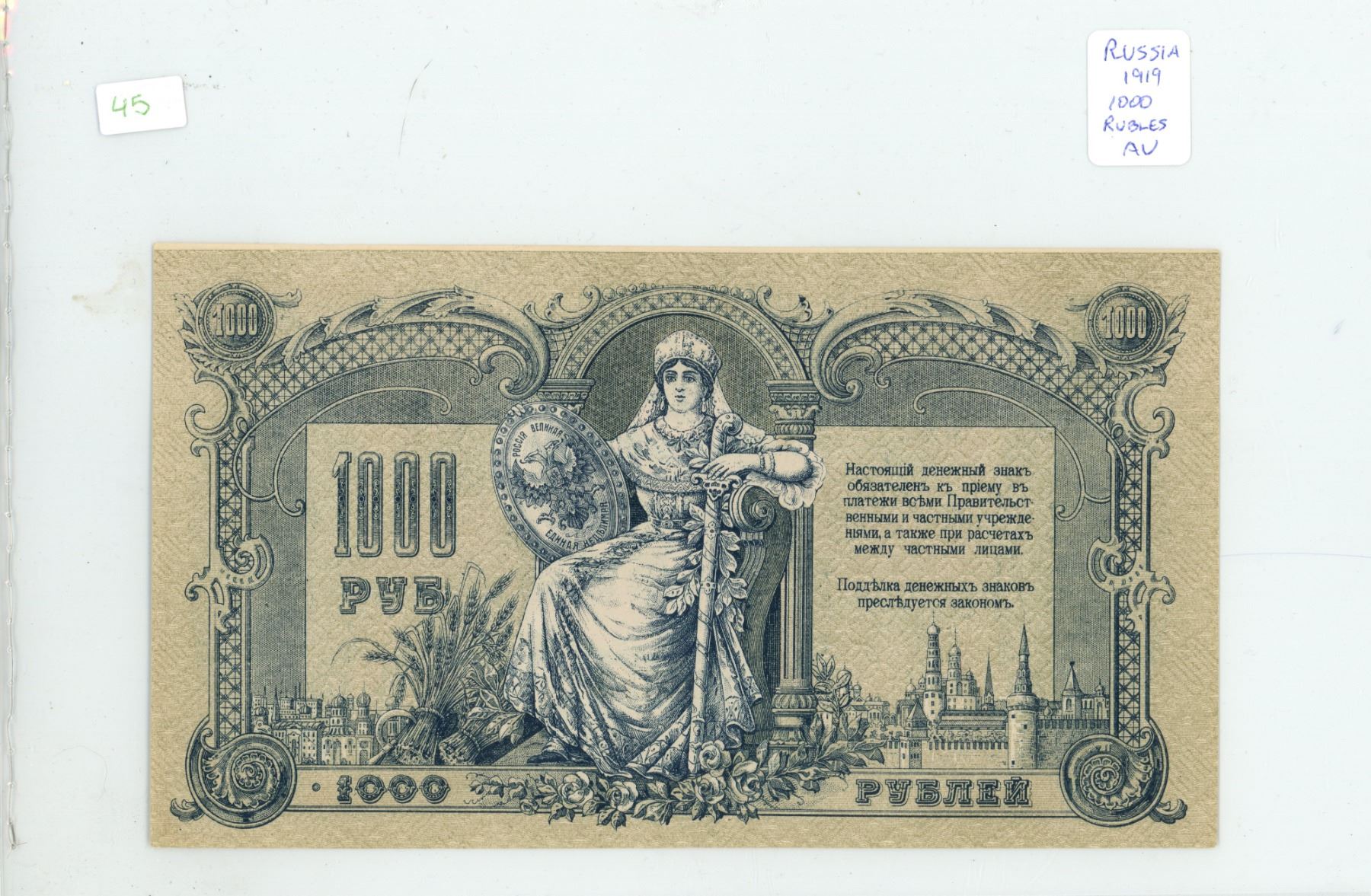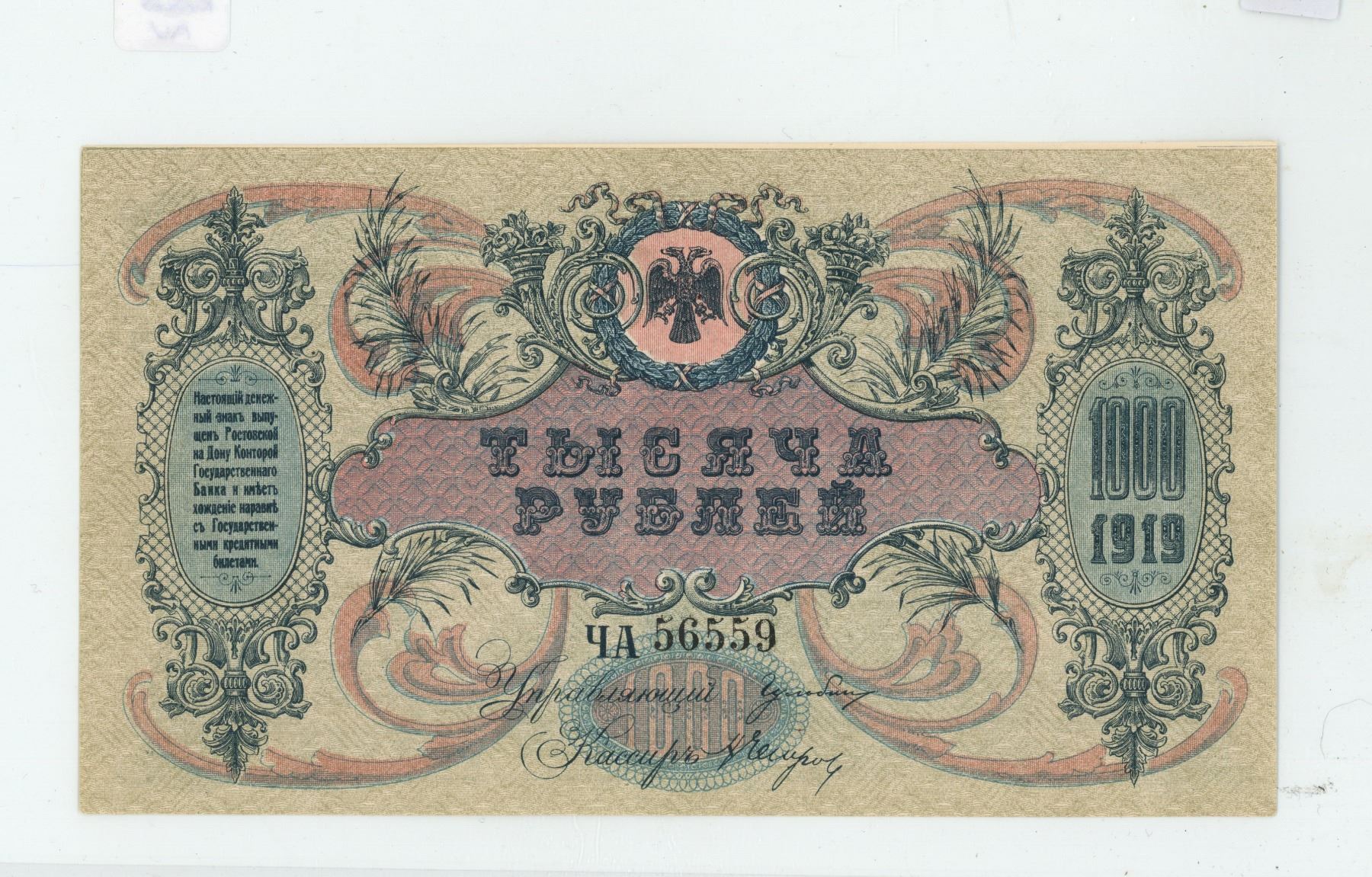 Russia. 1919 1000 Roubles. Massive note measures 7 3/4” X 4 3/8”. AU.
