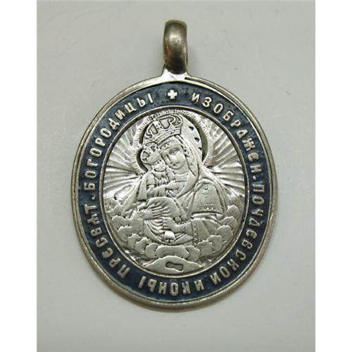 Russia 19th c. small icon-pendant, silver with dark blue enamel, mark 84