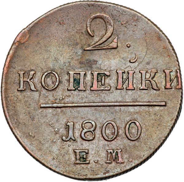 Russia. 2 Kopeks, 1800-EM. Bitkin-116; Br-79. Paul I. Extremely Fine.