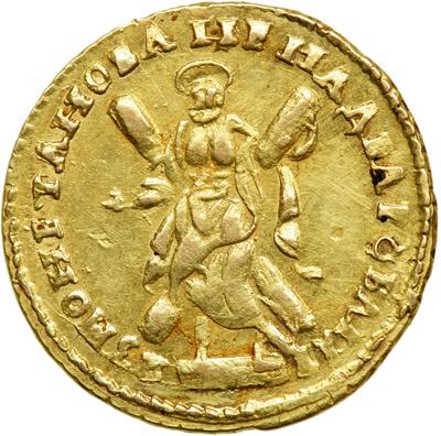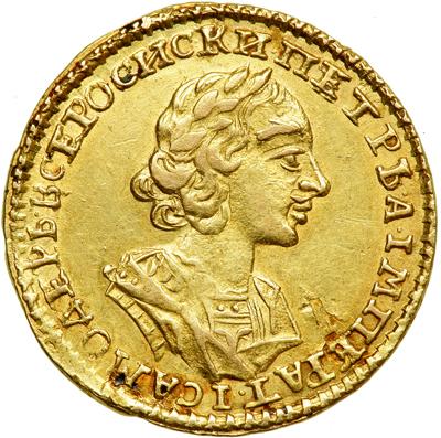 Russia. 2 Roubles, 1723. Bitkin 1st ed-105; Diakov-12; Fr-91. Peter I, The Great, 1682-1725. Laureate bust right. Reverse: St. Andrew. Lamination mark edge. Some original luster. Rare. Extremely Fine to About Uncirculated.