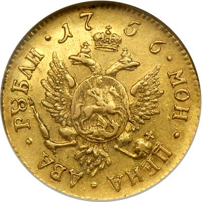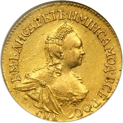 Russia. 2 Roubles, 1756-SPB. Bitkin 1st ed-64; Fr-115; KM-C23.2. Elizabeth, 1741-1762. Bust right. Reverse: Eagle. NGC graded AU-55.