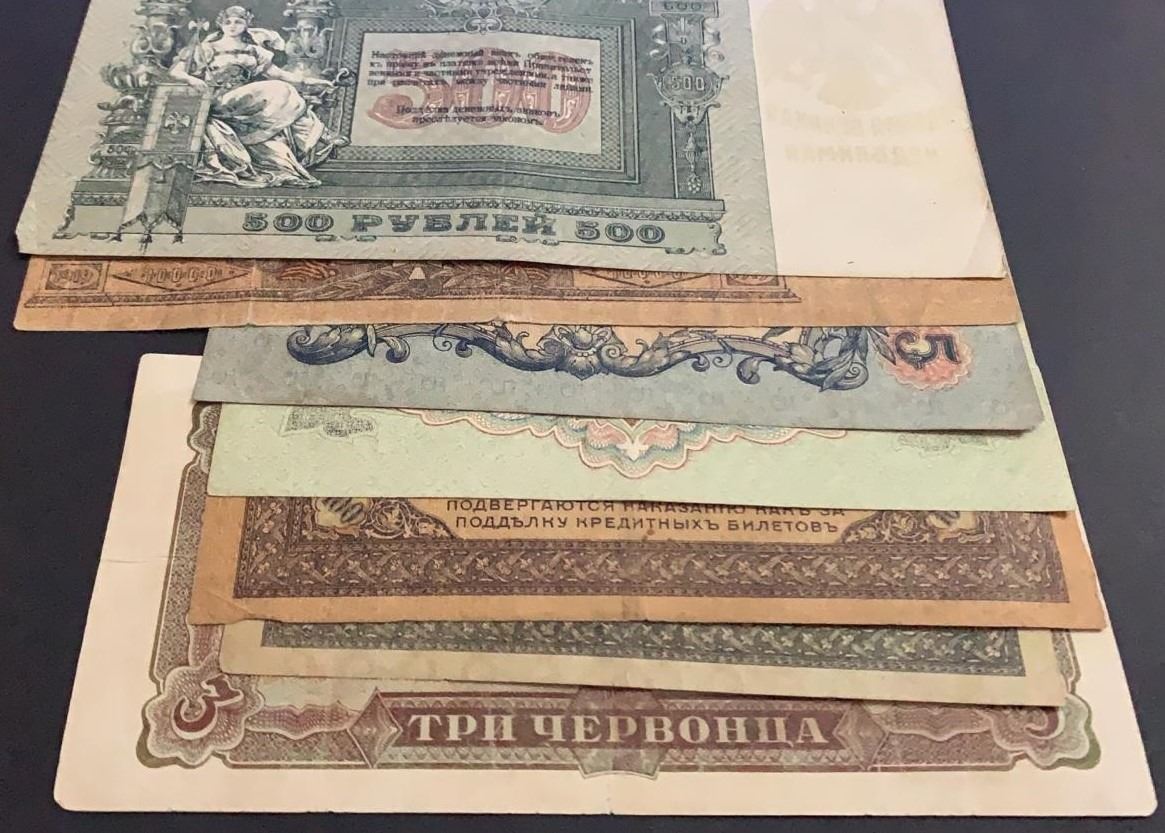 Russia, 3 Ruble, 1905, FINE, 3 Ruble, 1937, FINE, 5 Ruble 1909, VF, 50 Ruble, 1918, VF, 100 Ruble, 1918 VF, 500 Ruble, 1918, VF, 10000 Ruble, 1919, VF (Total 7 Banknotes)br/