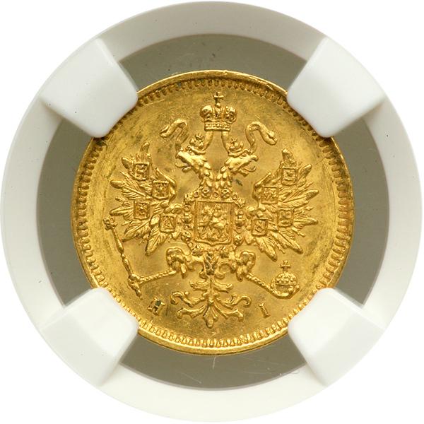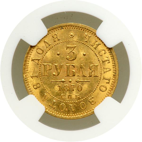 Russia. 3 Rubles, 1870-SPB NI. Bitkin-1st ed-32; Fr-164; KM-Y26. Alexander II. Eagle. Reverse: Value and date. NGC graded MS-63.