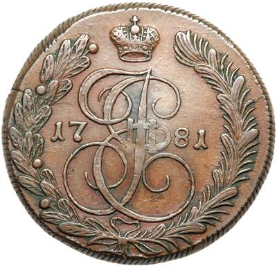 Russia. 5 Kopeks, 1781-KM. B-242; KM-C59.5. Catherine II. Extremely Fine.