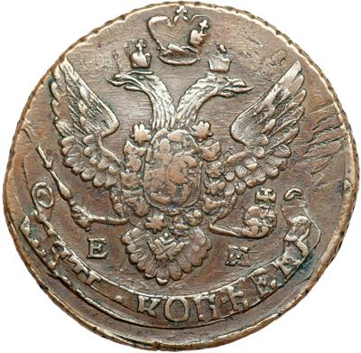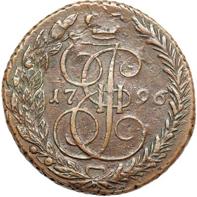 Russia. 5 Kopeks, 1796-YeM. B-309; KM-C59.3. Catherine II. Paul's overstrike. Extremely Fine.