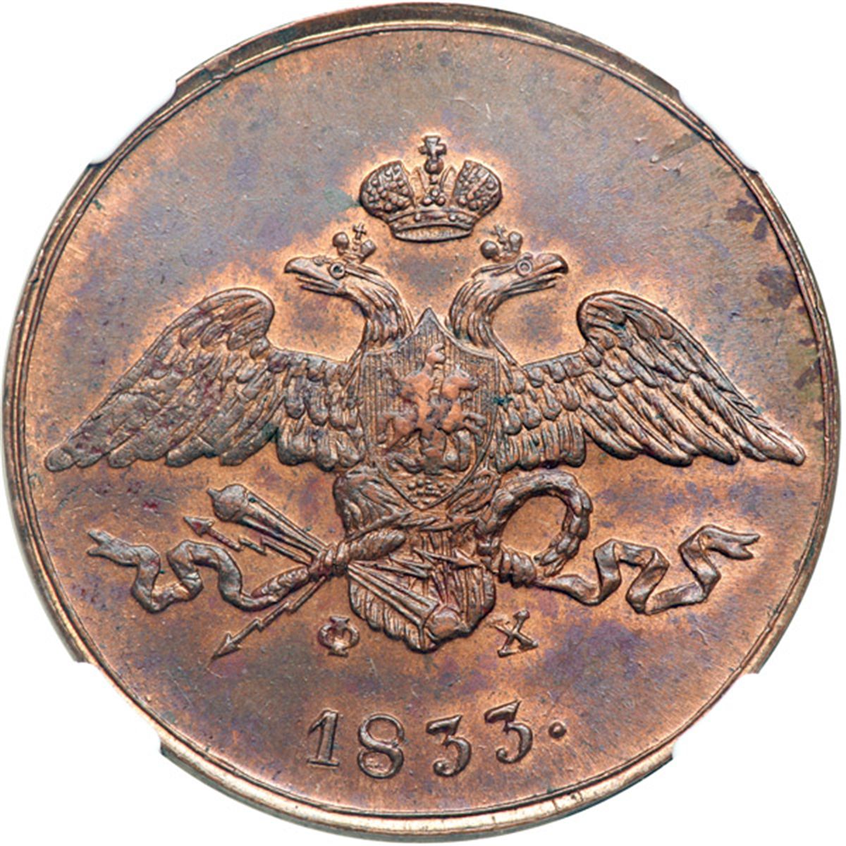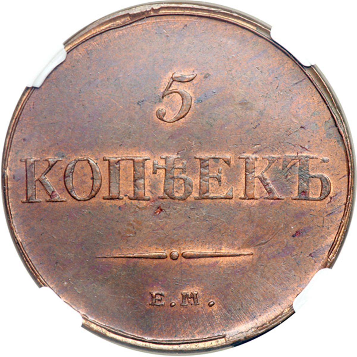 Russia. 5 Kopeks, 1833-EM. KM-C140.1; B-246. Nicholas I. Eagle. Reverse: Value. NGC graded MS-63 Red & Brown.