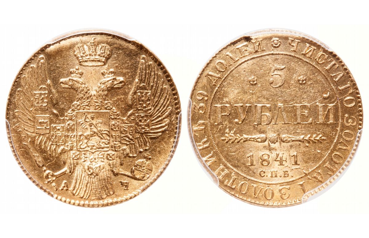 Russia. 5 Roubles. 1841. Gold, .917, 6.544g, AGW 0.1929 oz. PCGS graded Uncirculated-62.