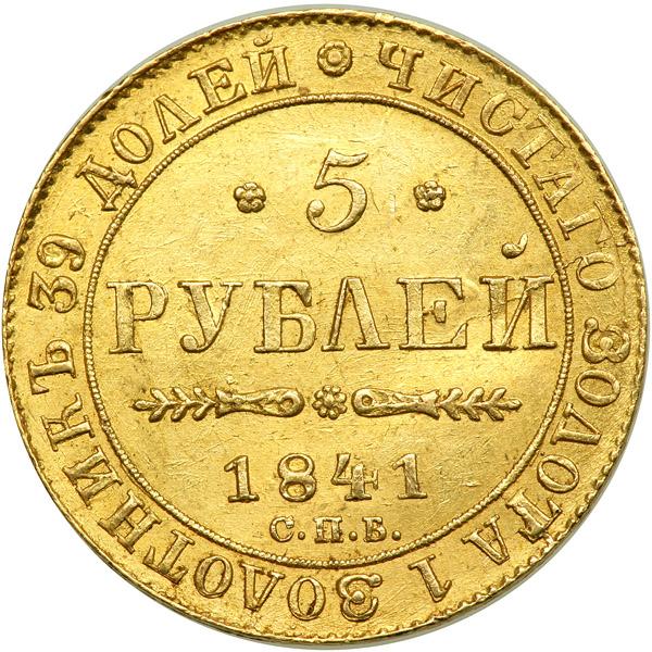 Russia. 5 Roubles, 1841-СПБ АЧ. Bitkin 1st ed, 18; Fr-155; KM-C175.1. Nicholas I. Eagle. Reverse: Value and date. NGC graded MS-63.
