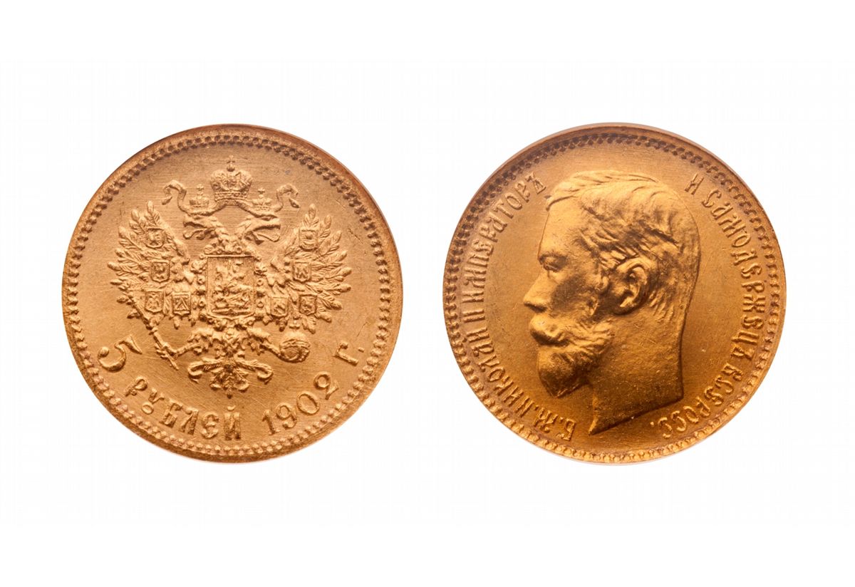 Russia. 5 Roubles. 1902. Gold, .900, 4.3013g, AGW 0.1244 oz. NGC graded Superb Gem Uncirculated-66.
