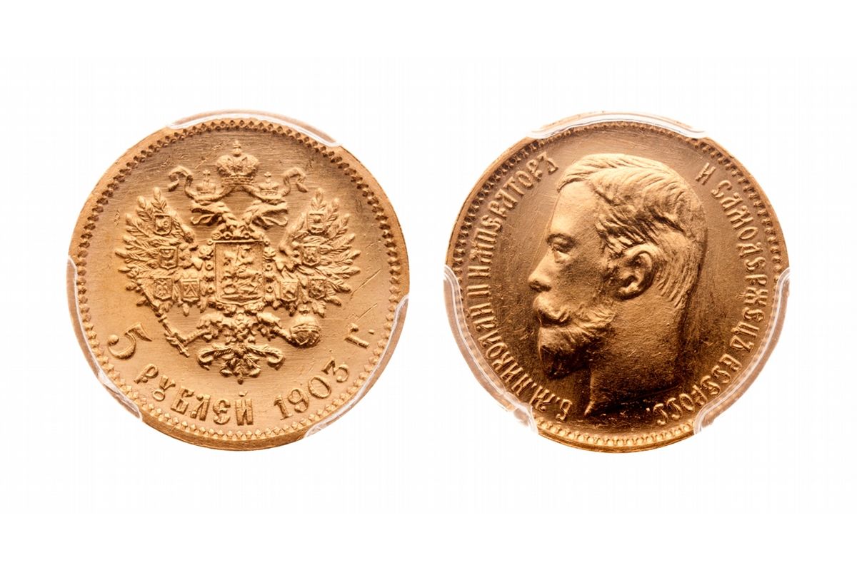 Russia. 5 Roubles. 1903. Gold, .900, 4.3013g, AGW 0.1244 oz. PCGS graded MS-64+.