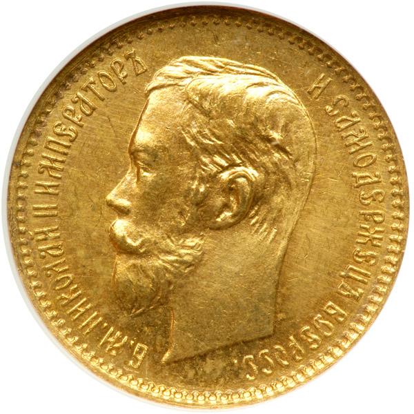 Russia. 5 Rubles, 1901-. Bitkin 1st ed-27; Fr-180; KM-Y62. Nicholas II. NGC graded MS-66.
