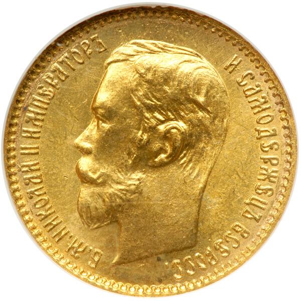 Russia. 5 Rubles, 1902-. Bitkin 1st ed-29; Fr-180; KM-Y62. Nicholas II. NGC graded MS-66.