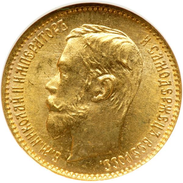 Russia. 5 Rubles, 1902-. Bitkin 1st ed-29; Fr-180; KM-Y62. Nicholas II. NGC graded MS-66.