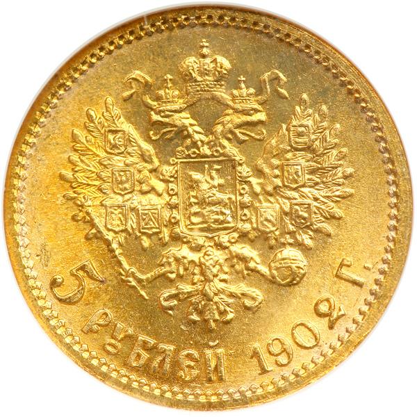 Russia. 5 Rubles, 1902-AR. Bitkin 1st ed-29; Fr-180; KM-Y62. Nicholas II. NGC graded MS-67.