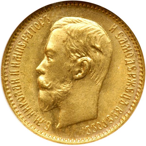 Russia. 5 Rubles, 1909-. Bitkin 1st ed-34; Fr-180; KM-Y62. Nicholas II. NGC graded MS-66.