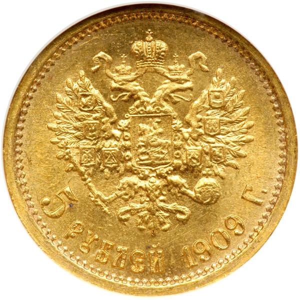 Russia. 5 Rubles, 1909-ZB. NGC MS66