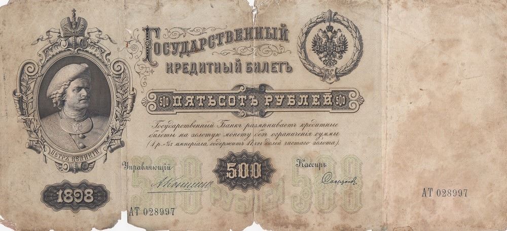 Russia, 500 Ruble, 1898, POOR, p6br/serial number: AT 028997, large size