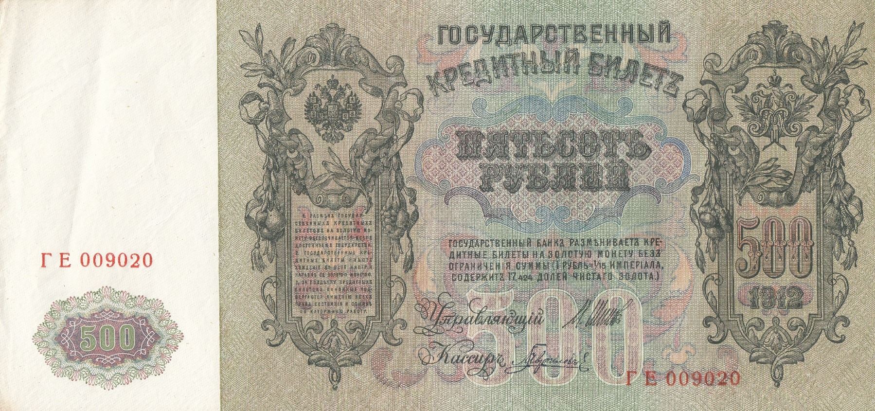 Russia, 500 Ruble, 1912, XF, p14br/serial number: 009020