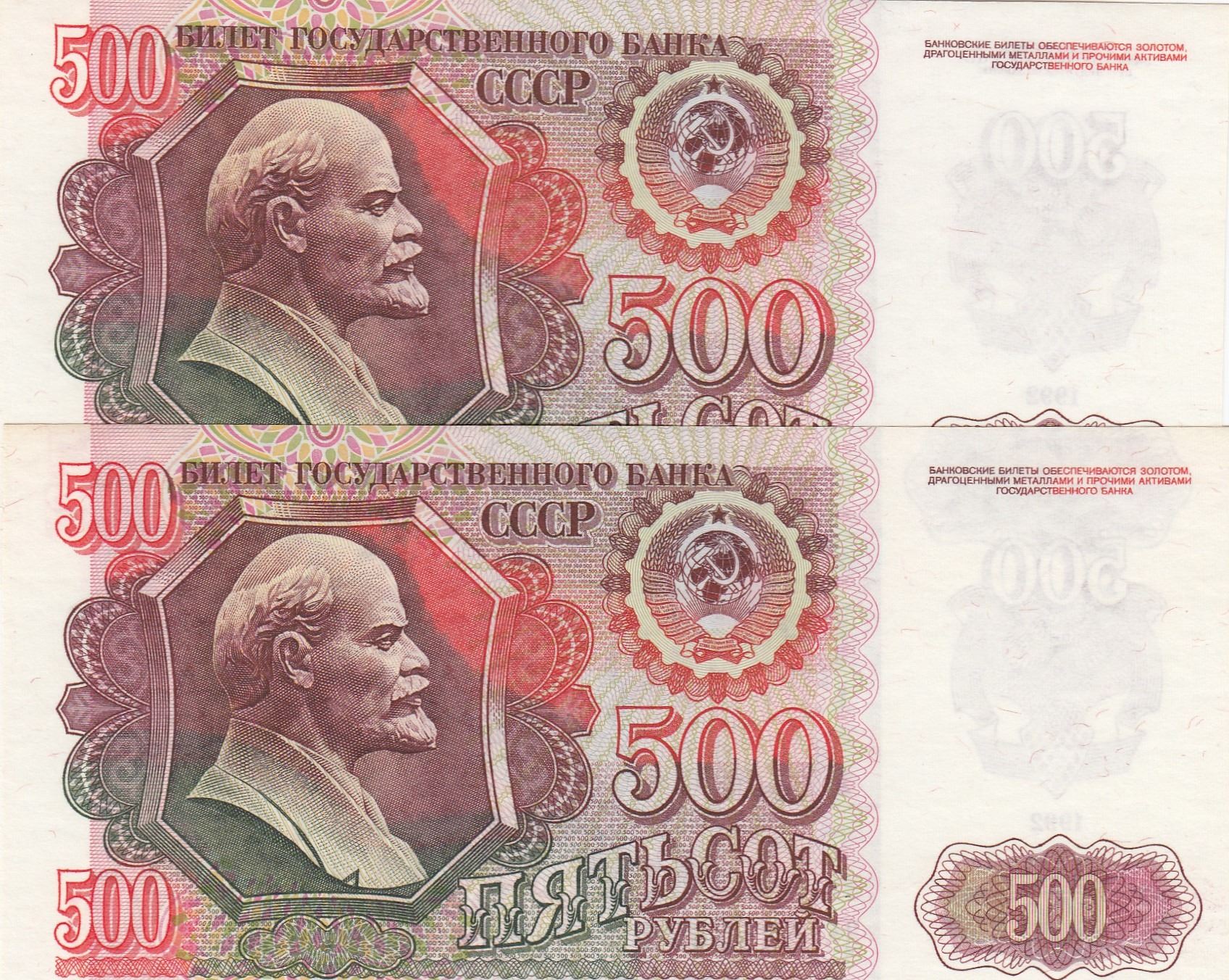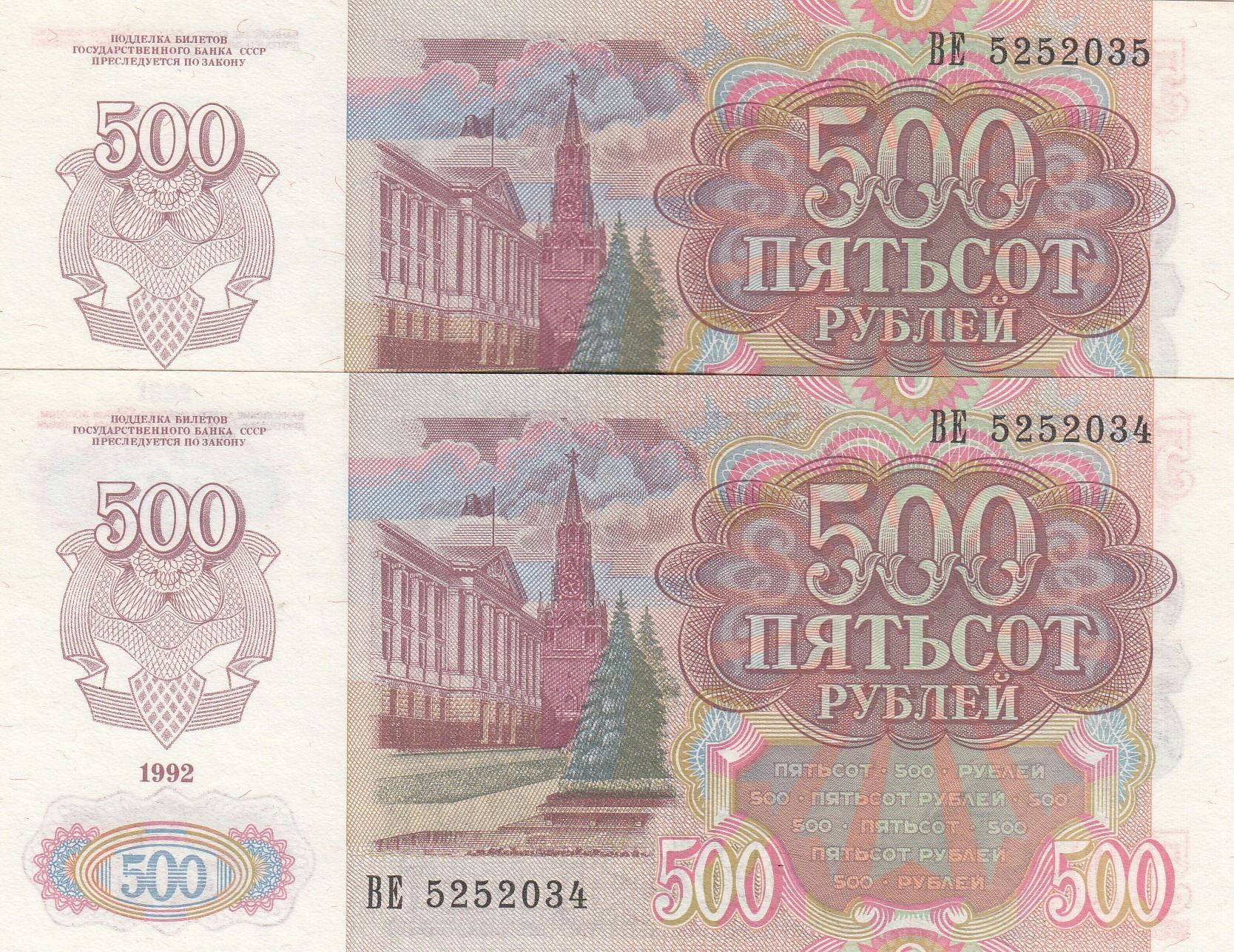 Russia, 500 Ruble, 1992, UNC, p249, (Total 2 consecutive banknotes)br/serial numbers BE 5252034-35