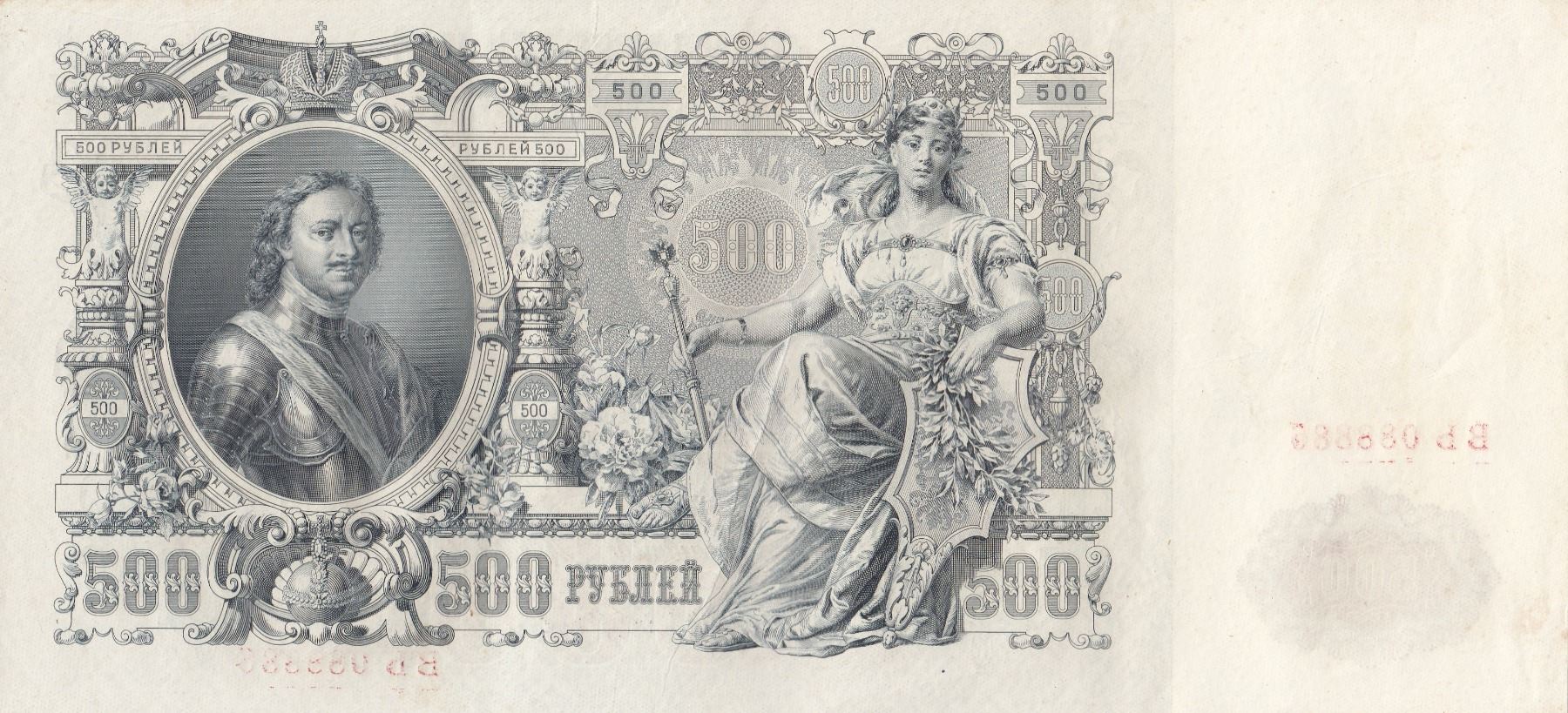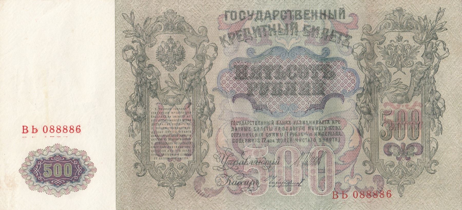 Russia, 500 Rubles, 1912, UNC (-), p14br/serial number: 088886, Although there is no folding in the banknote,