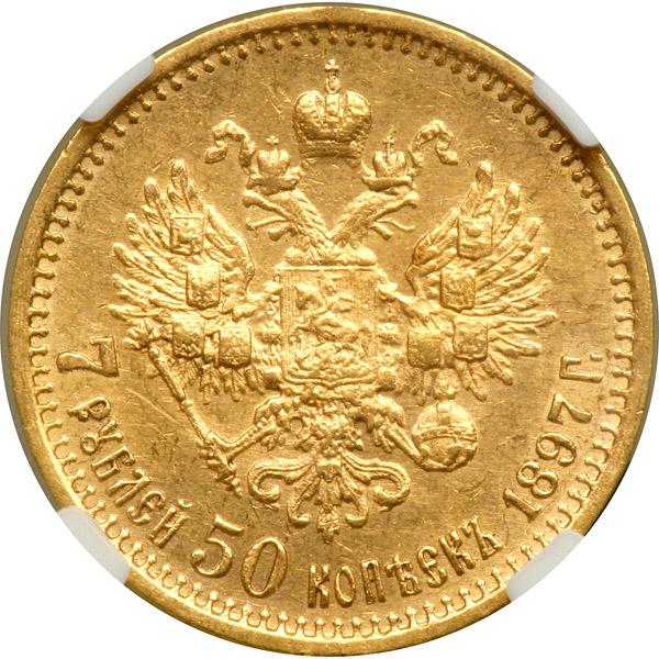 Russia. 7 1/2 Rubles, 1897. NGC AU58