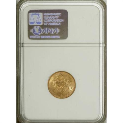 <B>A pair of Nicholas II gold 5 Roubles including</B></I>: 1900, MS66 NGC; and 1902 MS66 NGC. <BR><BR><b>Shipping:</b> Coins & Currency (<a target="_blank" href="http://www.heritageauctions.com/common/shipping.php">view shipping information</a>)