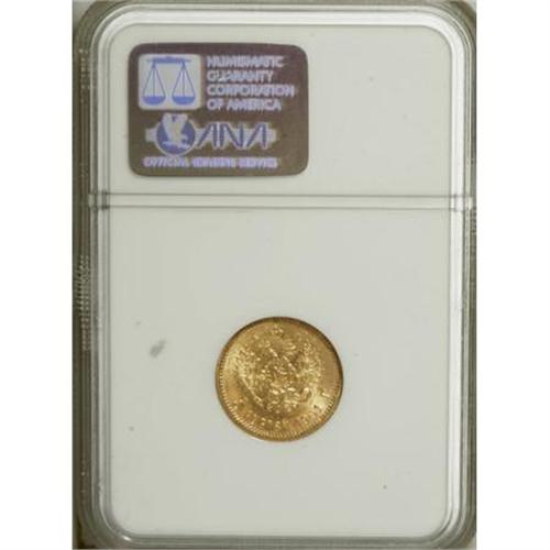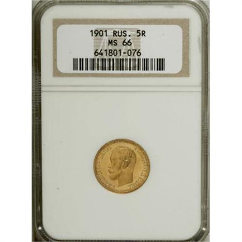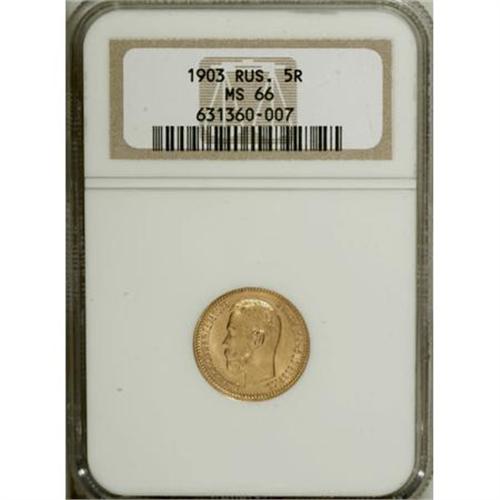 <B>A pair of Nicholas II gold 5 Roubles including:</B></I> 1901, MS66 NGC; and 1903 MS66 NGC. <BR><BR><b>Shipping:</b> Coins & Currency (<a target="_blank" href="http://www.heritageauctions.com/common/shipping.php">view shipping information</a>)