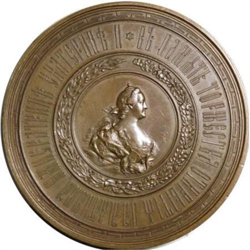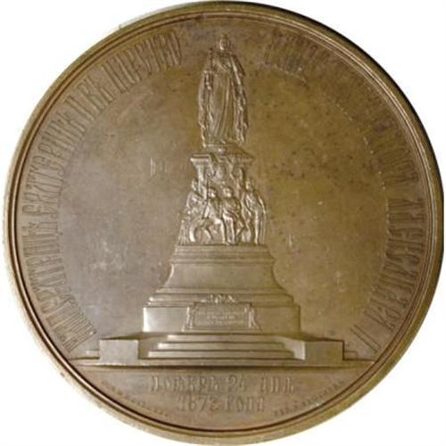 <B>Alexander II. Copper medal on the Opening of the Monument to Catherine II in St. Petersburg, 1873,</B></I> Bust of Catherine II within wreath/Catherine II monument, Diakov-801.1, Smirnov 724, 86 mm, Choice AU-UNC.<BR><BR><b>Shipping:</b> Coins & Currency (<a target="_blank" href="http://www.heritageauctions.com/common/shipping.php">view shipping information</a>)