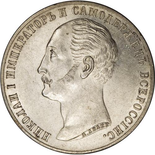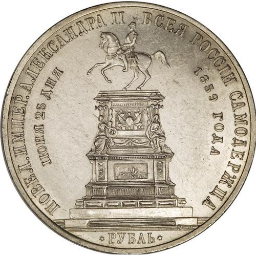 <B>Alexander II. Nicholas I Commemorative Rouble 1859,</B></I> by Lyalin, Bust left/Nicholas I monument, Bit-567, Uzd-4194, AU. Well struck with substantial luster and reflective surfaces.<BR><BR><b>Shipping:</b> Coins & Currency (<a target="_blank" href="http://www.heritageauctions.com/common/shipping.php">view shipping information</a>)