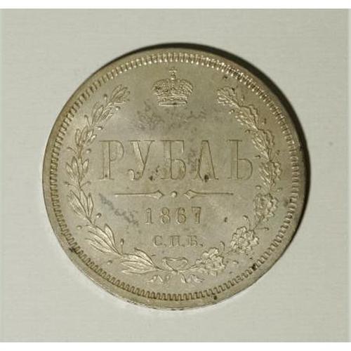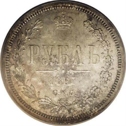 <B>Alexander II. Rouble 1867 C??-HI, </B></I> Imperial eagle/Date and value in wreath, Bit-80, UNC details Stained NCS. Similar to preceding lot with old staining over full luster.<BR><BR><b>Shipping:</b> Coins & Currency (<a target="_blank" href="http://www.heritageauctions.com/common/shipping.php">view shipping information</a>)