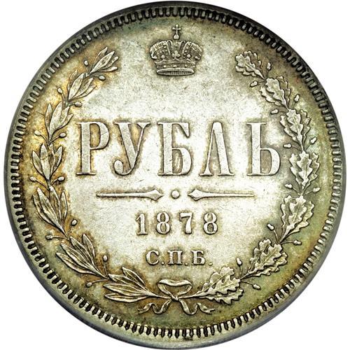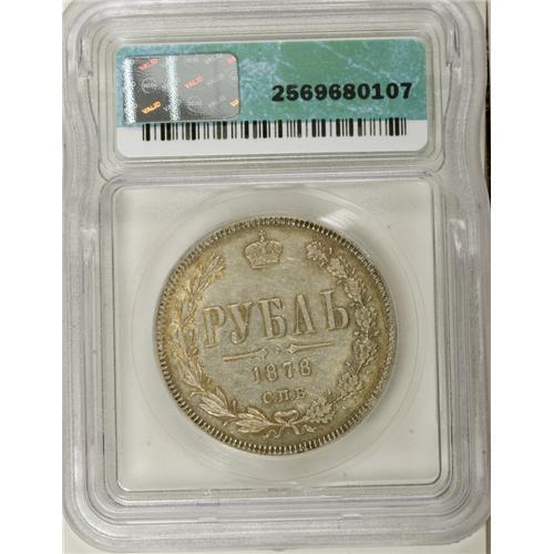 <B>Alexander II. Rouble 1878 C??-H?,</B></I> Crowned Imperial eagle/Date and value in wreath, Bit-92, Uzd-1933, AU53 ICG. Steel-gray and russet toning with considerable remaining luster.<BR><BR><b>Shipping:</b> Coins & Currency (<a target="_blank" href="http://www.heritageauctions.com/common/shipping.php">view shipping information</a>)