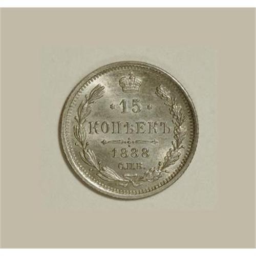 <B>Alexander III. 15 Kopecks 1888 C??-A?,</B></I> Imperial eagle/Date and value in wreath, Bit-121 (R), UNC. Well struck and brilliant with a few minor hairlines. A very scarce issue and quite rare in this condition. <BR><BR><b>Shipping:</b> Coins & Currency (<a target="_blank" href="http://www.heritageauctions.com/common/shipping.php">view shipping information</a>)