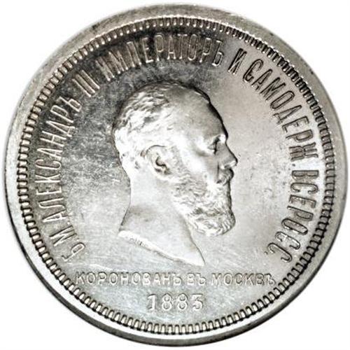<B>Alexander III. Coronation Rouble 1883,</B></I> Bust right with date below/Value above crown and scepter in wreath, Bit-217, Uzd-4195, Proof 63 Cameo NGC. Fully mirrored fields with frosty devices. Very rare in Proof and the first that we have seen.<BR><BR><b>Shipping:</b> Coins & Currency (<a target="_blank" href="http://www.heritageauctions.com/common/shipping.php">view shipping information</a>)