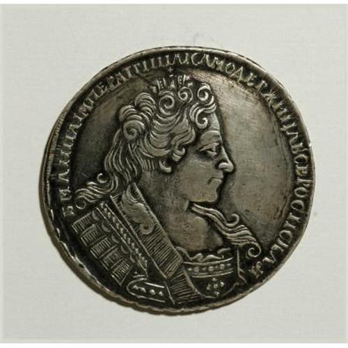 <B>Anna. Rouble 1732,</B></I> Bust right/Imperial eagle with date, Bit-50, about XF details, cleaned with obverse fields tooled. <BR><BR><b>Shipping:</b> Coins & Currency (<a target="_blank" href="http://www.heritageauctions.com/common/shipping.php">view shipping information</a>)