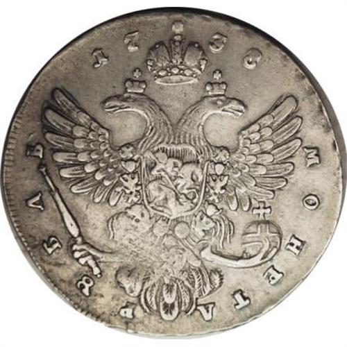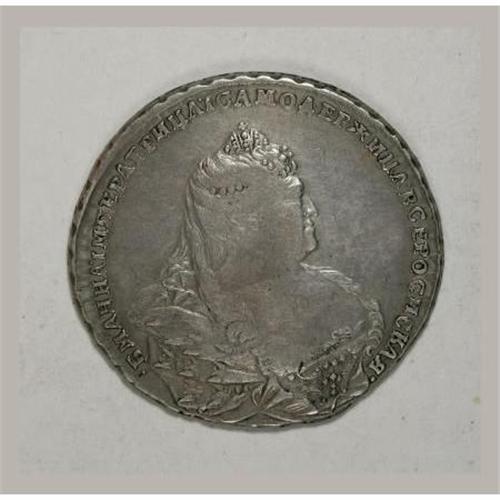 <B>Anna. Rouble 1738, </B></I> Crowned bust right/Imperial eagle, Bit-202, KM198, small crown on reverse, VF. Light gray patina with average strike.<BR><BR><b>Shipping:</b> Coins & Currency (<a target="_blank" href="http://www.heritageauctions.com/common/shipping.php">view shipping information</a>)