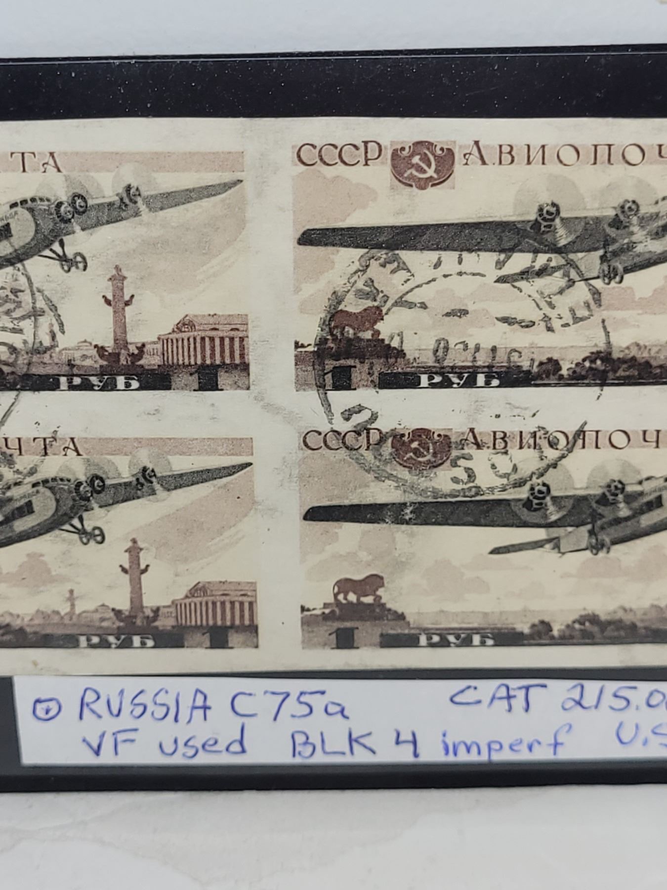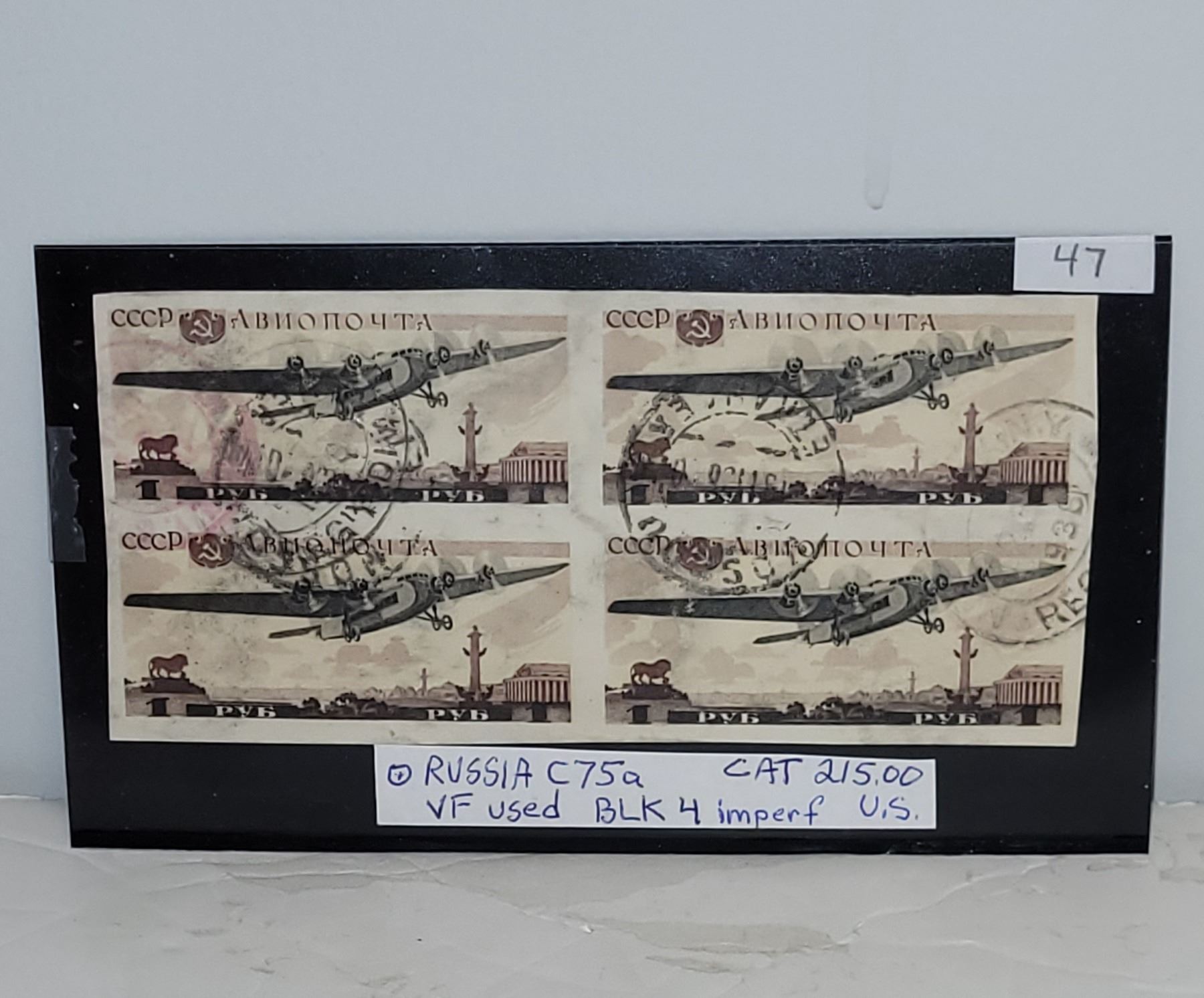 Russia C75A VF Used Imperf Block of4 YR 1937 Cat $215.00 US