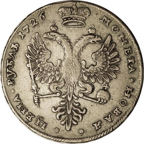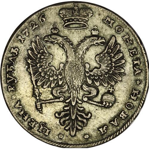 <B>Catherine I. Rouble 1726, Moscow,</B></I> Bust Right/Imperial eagle, KM177.1, Bit-44 var., Dav-1665, about XF with obverse flan flaws and barely noticeable reverse hairline scratches. A very scarce issue in this condition.<BR><BR><b>Shipping:</b> Coin/Currency (<a target="_blank" href="http://www.heritageauctions.com/common/shipping.php">view shipping information</a>)