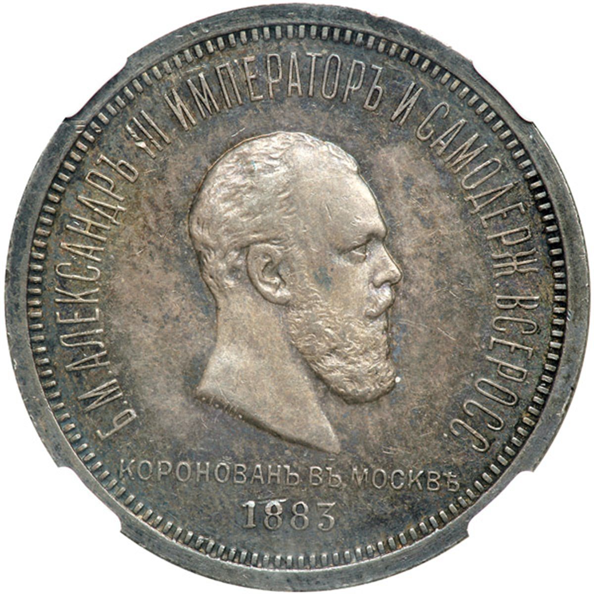 Russia. Coronation Ruble, 1883. Dav-291; Y-43. Alexander III. Toned. NGC graded Uncirculated, Details (Rim Damage).