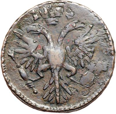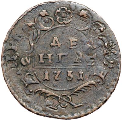 Russia. Denga, 1731. B-22; KM-188. Anna. Overstruck on 1 Kopek of Peter I. Very Fine to Extremely Fine.
